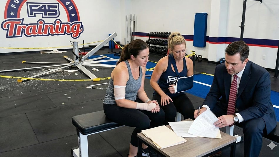 Three gym members filed a negligence lawsuit after a hanging ceiling fan fell on them during a workout session at F45 Training Hodges-Kernan, a fitness facility located at 12675 Beach Blvd, Suite 104, Jacksonville, Florida. The incident occurred on May 17, 2021, when Mary Menze, Sheryl Davis, and Kevin McGetrick were performing warm-up exercises at the gym. The case was heard in the Circuit Court of the Fourth Judicial Circuit in and for Duval County, Florida, under Case Number 2021-CA-6177, Division CV-B.