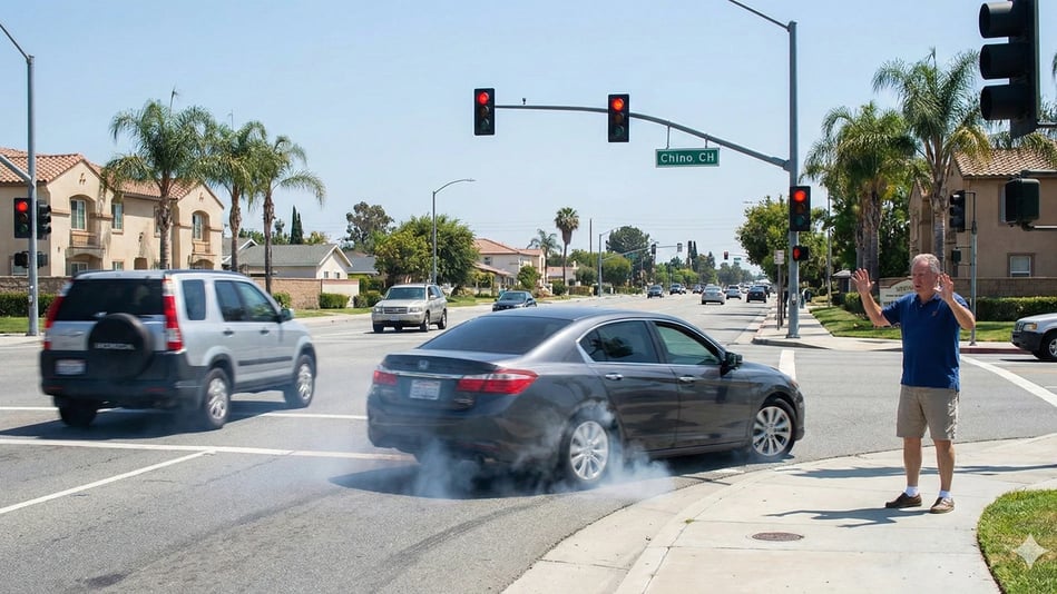 According to the legal complaint filed by the Plaintiffs, Officer Pozo drove the vehicle within the course and scope of his employment. The situation turned critical when Pozo allegedly failed to stop for a red light, a direct violation of California Vehicle Code Section 21453(a). This negligent act triggered a dangerous chain reaction. The officer's failure to obey the traffic signal caused a third-party driver to lose control of their vehicle. This loss of control sent the third-party vehicle careening toward the sidewalk where James Simpson walked, resulting in a collision with the pedestrian.